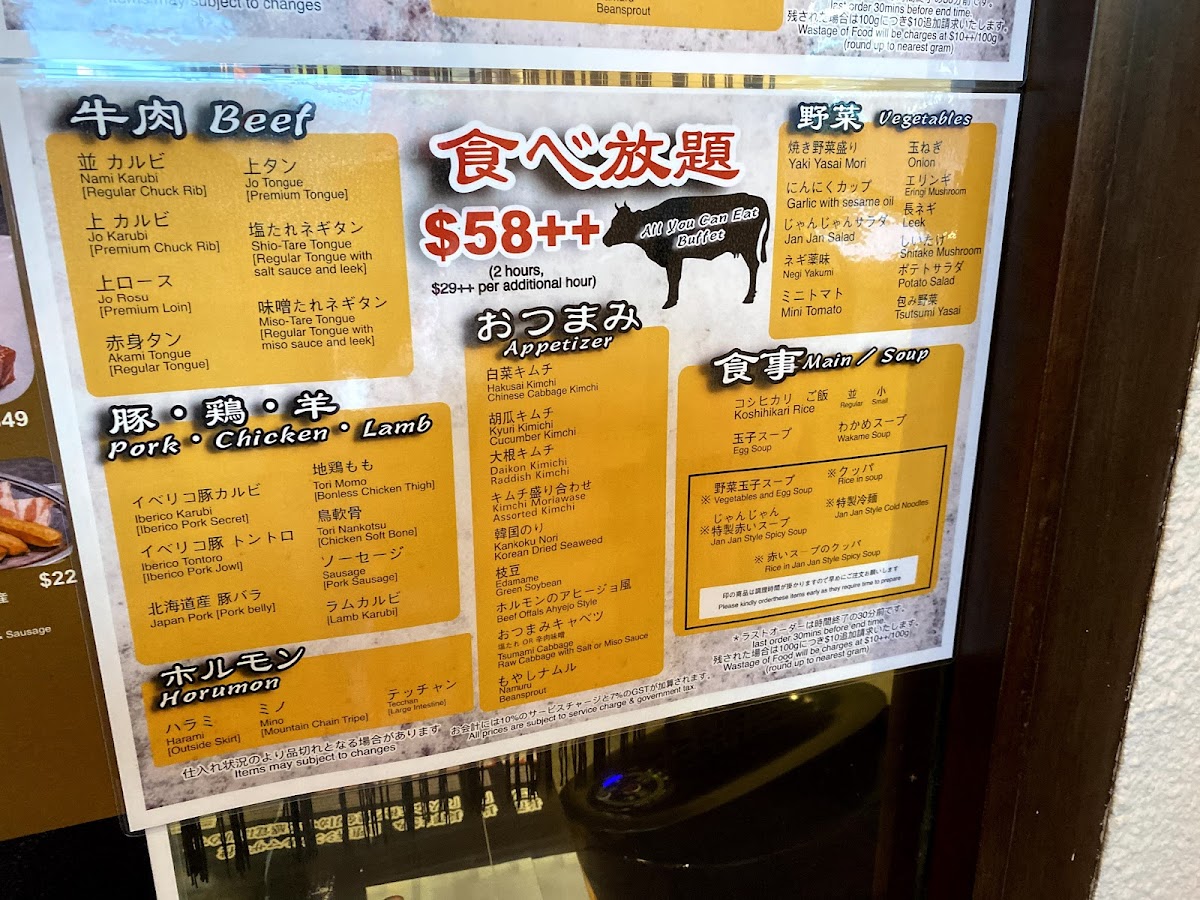 At Yakiniku Jan Jan, located at 43 Cuppage Rd, Singapore, the menu is a delightful homage to authentic Japanese yakiniku. This restaurant offers a premium buffet experience that showcases high-quality meats, particularly their renowned wagyu cuts.